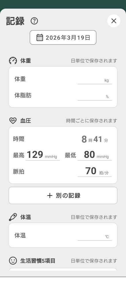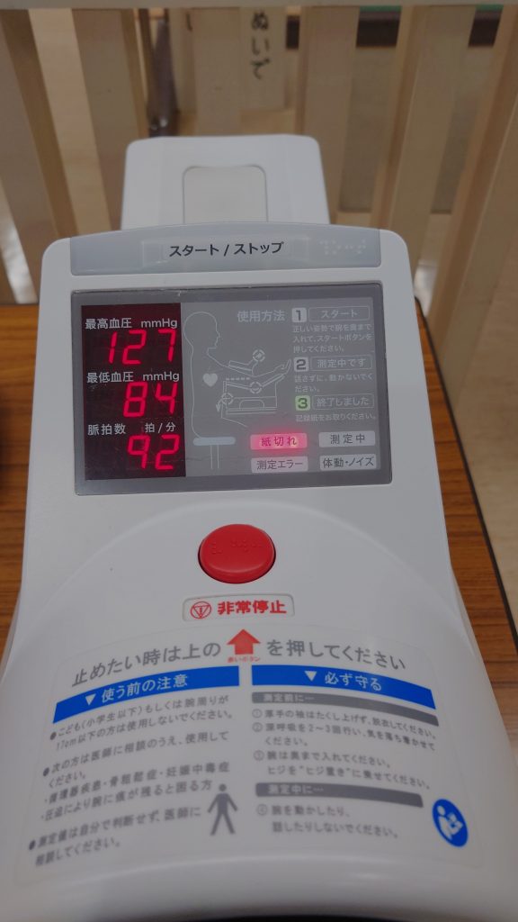 朝の血圧測定です。