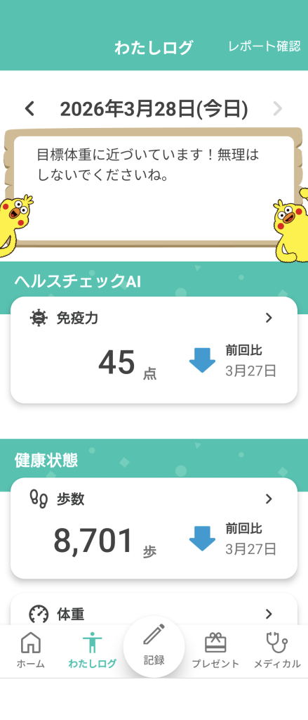 - 適度な運動(8,701歩)