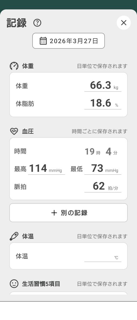 今朝の血圧はこれまでの中でもやや高めの数値となりました。