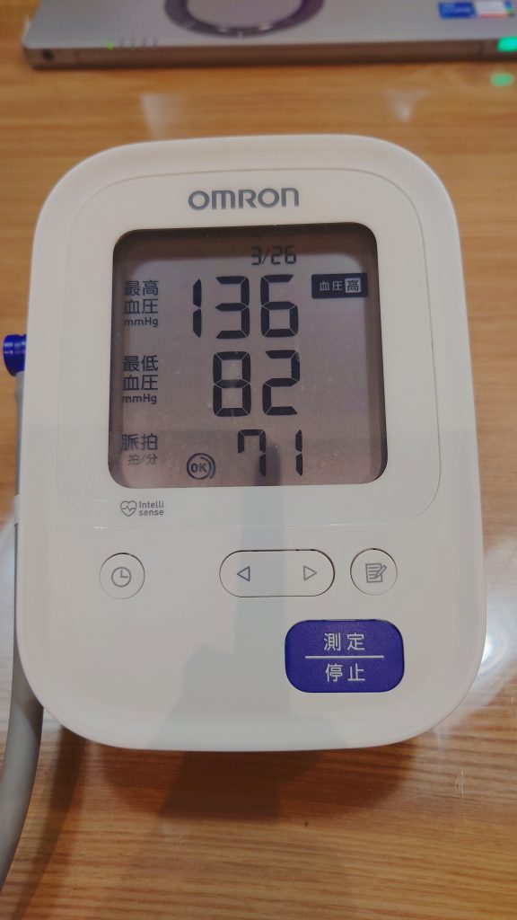- 血圧:136 / 82